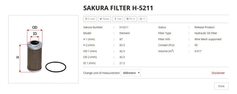 مشخصات ظاهری و اندازه فیلتر ساکورا مدل H-5211